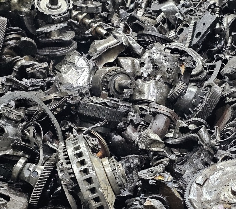엔진 및 변속기 스크랩은 재활용 라인에서 처리되며, 철(Fe) 및 기타 불순물을 제거하기 위해 분리 시스템을 통과합니다.